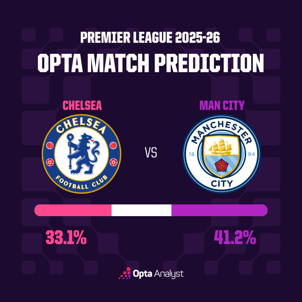 - Opta超级计算机预计比赛将异常激烈,但曼城是该模型的热门,对阵切尔西的胜率为41.2%。