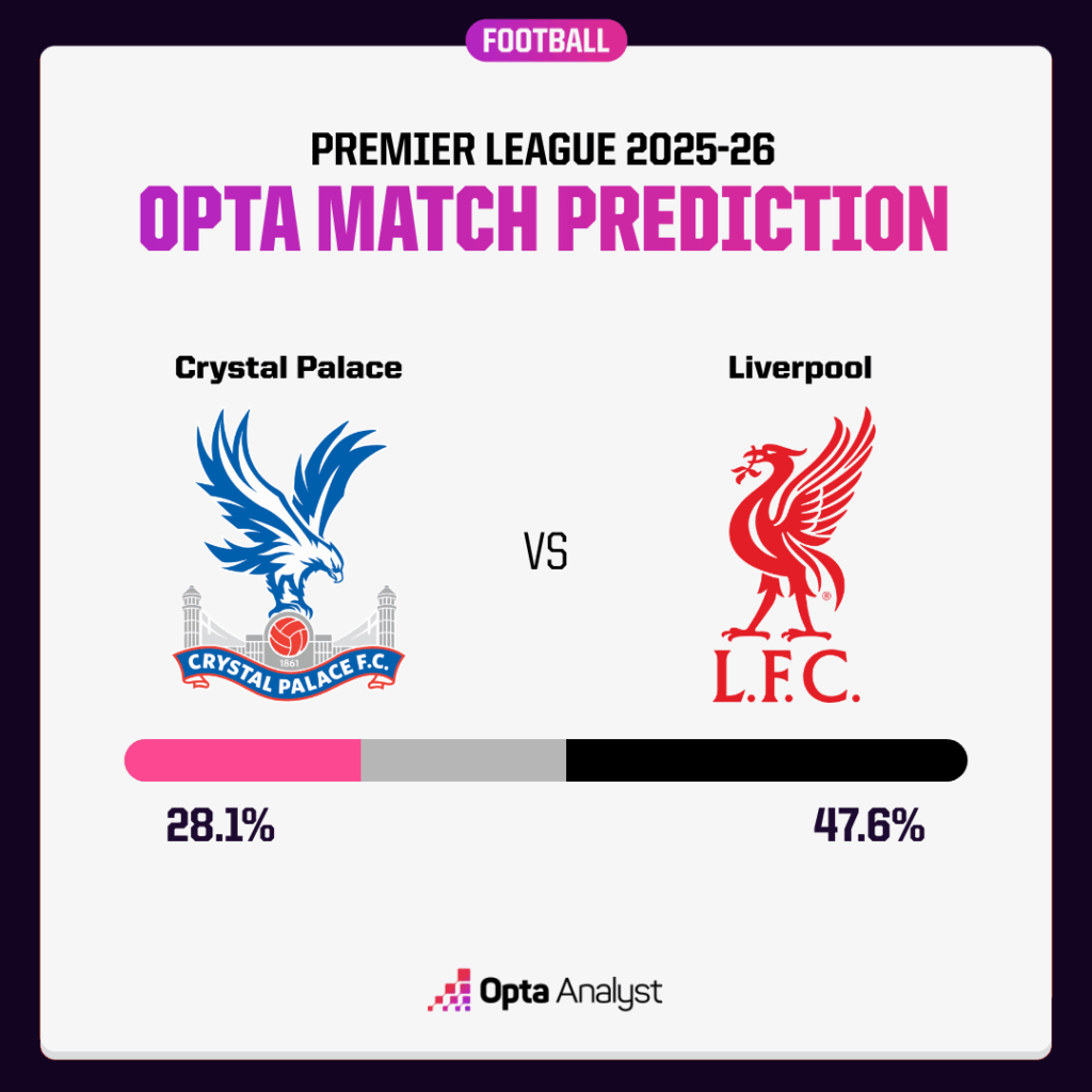 利物浦会击败水晶宫吗?Opta超级计算机的预测几乎和抛硬币决定差不多。